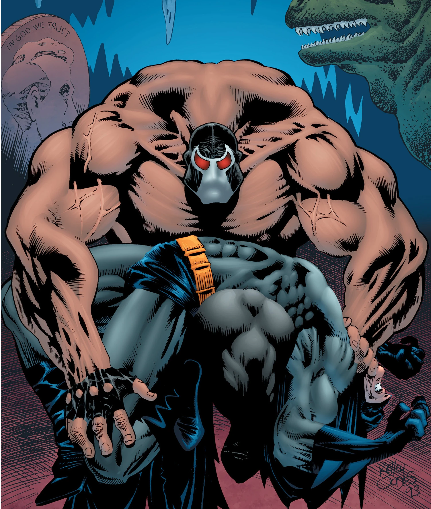 Historia: Bane nació y se crió en el penal de Peña Duro en Santa Prisca, sufriendo la sentencia a cadena perpetúa que debería haber recaído sobre su desconocido padre. Allí se formó tanto física como intelectualmente y pronto era el “dueño” del penal. Fue elegido como candidato para testar una nueva droga que potenciaría su poder físico. Sobrevivió al experimento, pero se hizo terriblemente dependiente de esa droga.