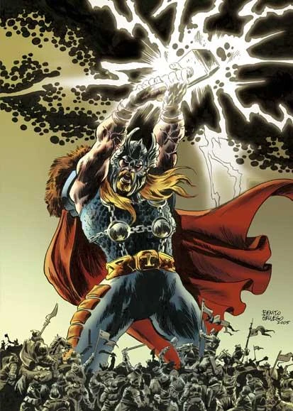 Historia: Thor es Asgardiano, raza extra-dimensional de seres auto-proclamados dioses, originaria de Asgard que creó un sistema de culto entre las tribus nórdicas. Para ellos fue un belicoso dios de la guerra, Pero su agresividad rebasó los límites y su padre Odín lo desterró a vivir como mortal en Midgard (La Tierra) en la personalidad de un médico lisiado de una pierna, Donald Blake, sin recordar quien era realmente hasta que aprendiera a valorar la justicia y la paz, momento en que el destino le devolvería su identidad de dios del trueno.